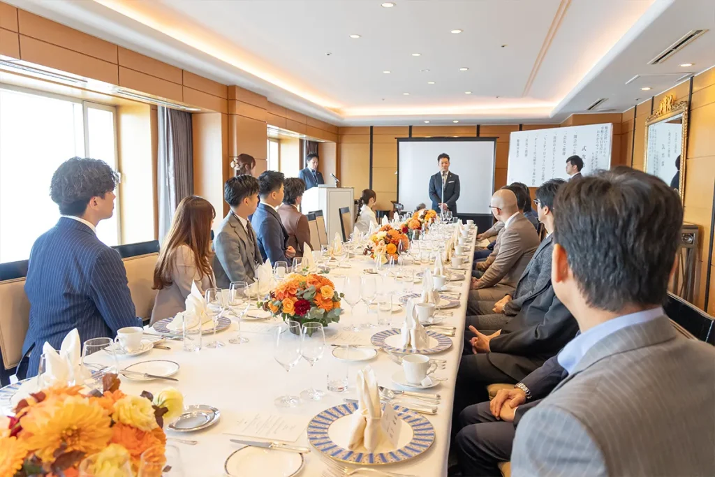 表彰式後の懇親会では、オーナー様お一人おひとりに今後の抱負を語っていただきました。 「30店舗、いや40店舗出店します!」「今期100店舗達成します!」といった力強いお言葉が多く、中には従業員様の方から「もっと出店したい!」と声を上げている企業様もいらっしゃり、組織全体での成長意欲の高さに圧倒されました。